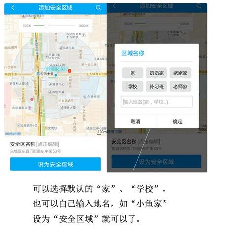 点击“安全区域”,将学校、家或其他经常去的场所设置为安全区域。