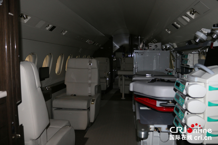 他介绍说,早在10 多年前中国就已经开始进行空中医疗救援了,但迄今为止一直是将客机或小型公务飞机临时改装一下,搭载一些最基本的急救医疗设备,用来转移危重病人。而急救中心最新购置并改装完成的这一架飞机却是首架专门用于远程医疗救援的飞机,相当于一个空中急救室,且配备了最先进的设备,“这架飞机在出厂的时候就进行了专业的改装,担架、监护仪、微量泵,还有体外膜肺,包括血库等先进的设备都提前固定好了。”