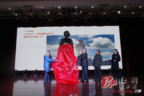 其中,河南许昌阳光福利院院长、著名农民慈善家牛志远委托儿子牛战锋租车把一尊高2.8米、重300公斤的何宝珍烈士铜像运到了花明楼。刘少奇长女刘爱琴与长孙阿廖沙为铜像揭幕,何宝珍烈士铜像栩栩如生地展示在世人面前,嘉宾们纷纷落泪,场面十分感人。