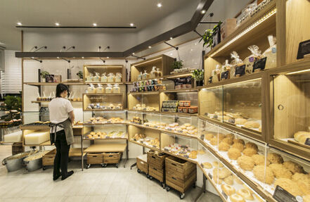 新概念门店的设计灵感来自高档餐厅的“大厨私房菜”,面包新语的烘焙师们可以在此将招牌精品呈献给消费者。门店还将内场厨房与外场购物区有机结合,打造了烘焙师的创意工作空间,他们不仅可以从参考烘焙书籍中不断获得灵感,同时也受周围绿意环境启发而开发出各种新鲜产品。