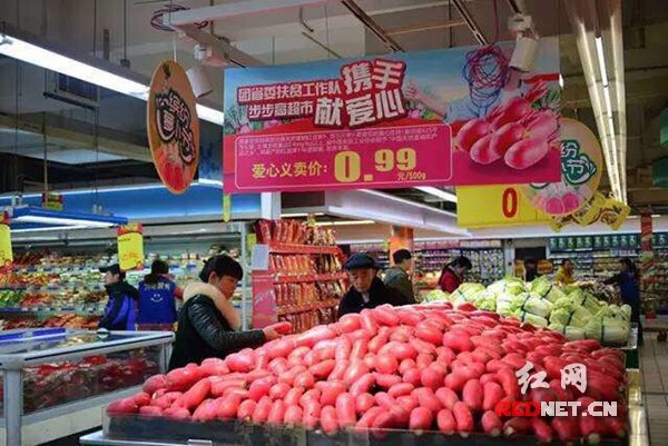 超市:为了帮助国家级贫困县永州新田滞销的天然富硒红皮萝卜,团省委、步步高“精准扶贫”正在积极行动。作为湖南商超唯一采购代表,步步高首批订货1万斤,11月25日已在长沙、湘潭、株洲、益阳、衡阳、娄底上柜销售,第二批1.2万斤将于11月26日采摘完成,陆续在全国步步高超市以0.99元/斤零利润价销售,市民可前往购买献爱心,这是天然富硒红皮萝卜在湖南市场首次开卖。