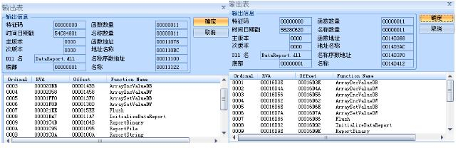 1、 对比正常DataReport.dll(左)和木马释放出来的DataReport.dll(右)文件, 木马