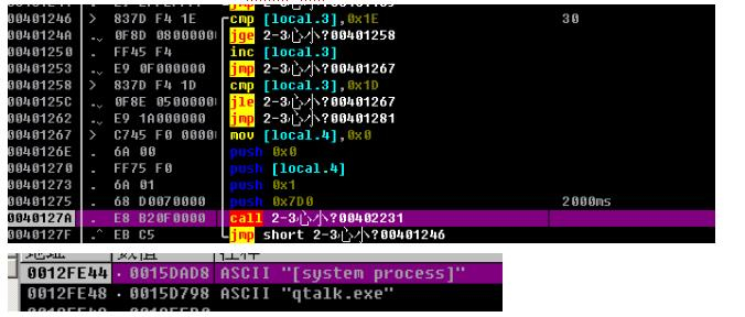 3、 等待1分钟后遍历进程,查找qtalk.exe