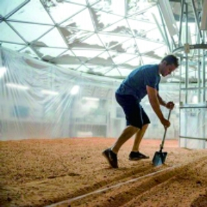 在火星上荒野求生,填饱肚子成为头等大事。男主角马克的解决方案是在栖息舱里开辟了126平方米的土豆田。马克能种土豆的重要前提是舱内存有从地球带来的生土豆,这是NASA为宇航员准备的感恩节礼物。把火星土铺进栖息舱、耕出浅沟(如图),把肥料和土豆埋进去,然后马克开始了造水工程。