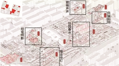 设计方案建议可以恢复这两个园子,并且可以打造契合古代的市隐园精品民宿,让产业带动街区发展。而在大油坊巷一带还曾经有个庙叫翔鸾庙,设计方案也建议再复建这个庙宇。