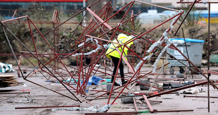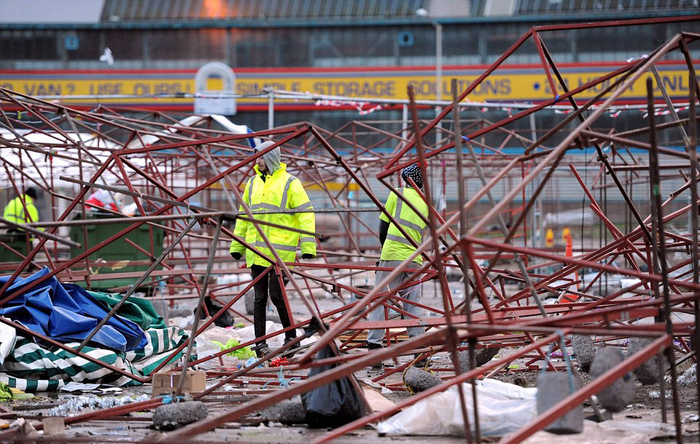 圣诞市场上唯一的圣诞标志被狂风撕裂成碎片。(网页截图)