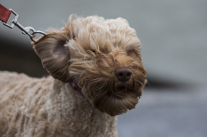 在英国南威尔士海岸线附近,这只勇敢的小狗正顶风而行。(网页截图)