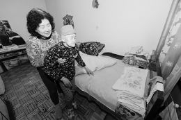 ④天气不好时,就在家里扶着老母亲活动一下。