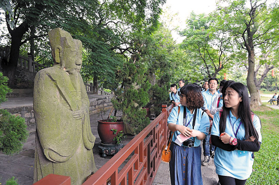 赵跃和身后穿着蓝色参观服的网媒记者们一样,青春且有活力。这群来自全国50多家网络媒体的记者们,平均年龄仅27岁。他们,面对拥有1400历史的南海神庙,仿佛是在与一位世纪老人对话。
