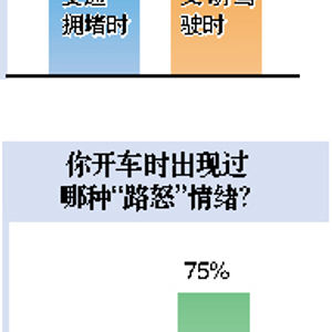 在开车过程中,有75%的受访者表示“遇到堵车就急躁”,有50%的受访者表示自己有过开车骂人和前车稍慢就打闪灯或鸣笛的情况,有33%的受访者表示遇到不文明驾驶就想给点“颜色”人家看看。据心理专家的分析,上述行为都是“路怒症”的典型症状。