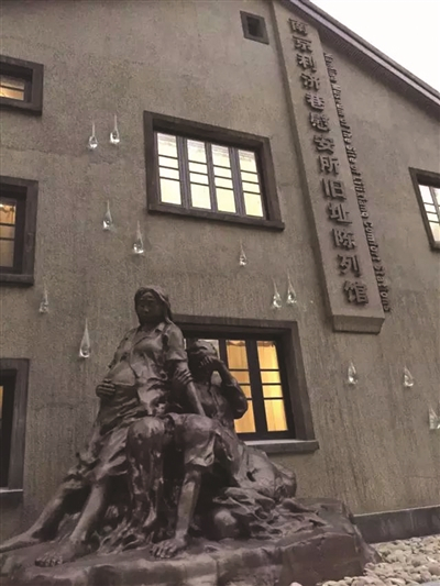 昨天上午10点,南京利济巷慰安所旧址陈列馆“开馆”仪式在西门广场举行,已故“慰安妇”雷桂英老人的亲属参加。来到陈列馆门口,记者首先看到了震撼人心的“慰安妇”主题雕塑。雕塑由三位“慰安妇”组成,其中身怀六甲的“慰安妇”为主要人物,她身形虚弱,一手护住腹中胎儿,一手搭在另一妇女背上,显得无力、无助与无望。