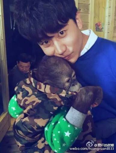 他和一只名叫“六毛”的小猩猩成了好朋友,在他的微博里,有与动物的各种合照,有句话不是这么说的吗?“爱动物的男生不会坏!”