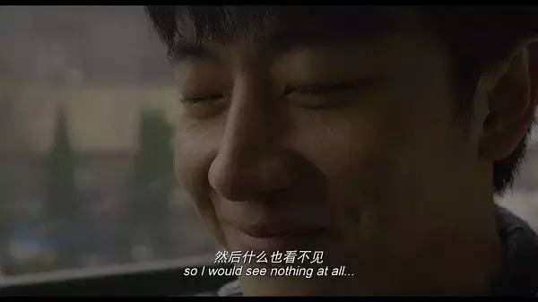 看过《推拿》的人都会记住这一幕,视线模糊的小马提着一袋菜回家,从楼道穿过,遇到正在洗头的小蛮,小蛮边慢慢擦头发边看着小马,小马露出了会心的微笑……脸部特写持续了近30秒,没人能够忘记这张脸,然后听着尧十三的《他妈的》,然后,什么也看不见。