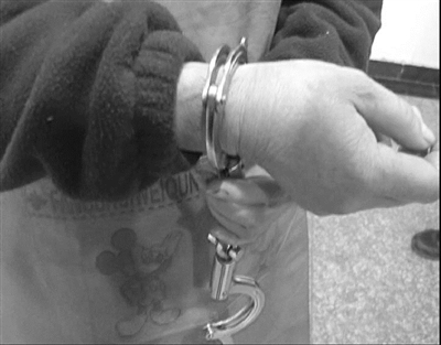 说起事情的原委让人啼笑皆非。廖女士说,她是路边洗车摊的洗车工,这个手铐是她在路边捡到的,在捡到手铐之后,在对其进行研究的过程中,以为是玩具,就套在手腕上捏一捏,将手铐戴在了自己的右手手腕上,看看是什么原理,结果越捏越紧,后来,她试着涂点酒在手腕上想脱下,没有用,又用菜油润滑手腕,结果还是拿不下来,这下慌了。万般无奈的情况下,廖女士立即来派出所“自首”求助。