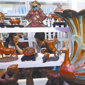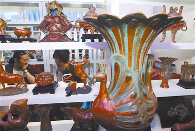 杨俊宏告诉记者,他们的作品已经有了走下“神坛”的意思,在兴达陈列展示台,记者已经看到了与人民日用有关的各种斑铜器皿。