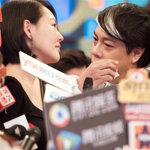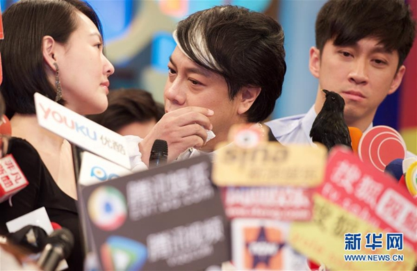 12月2日,蔡康永(中)在《康熙来了》告别记者会上接受访问时一度哽咽。新华社记者姜克红摄