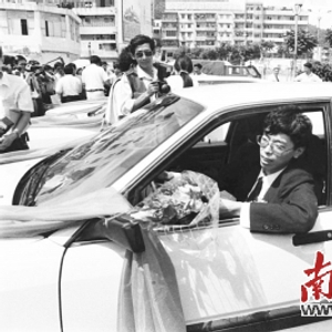 史玉柱在珠海获得1992年度的科技进步奖。图为史玉柱坐在奖给他的白色奥迪车里。资料图片