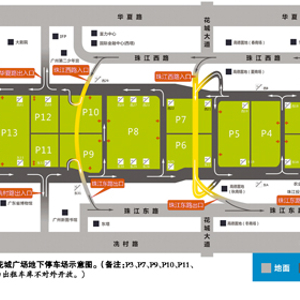 事实上,花城广场地下停车场分划成13个停车库,从P1到P13车库由北往南按顺序分布。13个停车库之间相互独立,并不相互贯通,它们之间靠一条地下环道连接,车辆顺着地下环道,可进入各个停车库。