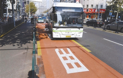 12月7日,上海,全长4.5公里的上海西藏南路彩色公交专用道正式完工,红色的公交专用车道不仅可以减少车轮打滑,还为上海道路增色不少。据悉,目前上海“十二五”期间300公里公交专用道设施建设已经基本完成,其中彩色路面提示系统以及公交信号灯优先系统,也即将展开试点。