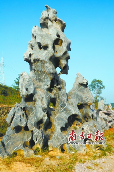 林超富:英石产业日益发展的同时,人才紧缺问题逐步凸显,已成为英石产业发展的瓶颈。比如以前开采英石,靠石农捡靠车拉,现在大部分英石都深埋土里,只在地面露出一小块,这就要靠有经验的采石工通过观察或敲打来判断这块石头有多大价值,否则花了半天时间,又机械又人工的挖出来,就是浪费;又比如发展园林石产业就需要一批园林设计人才。