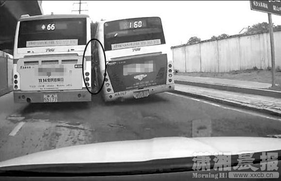 红网长沙12月11日讯(潇湘晨报记者 吴和健 实习生 张力文)12月9日,网友“清风拂山岗”在红网论坛发帖,称12月6日清早通过行车记录仪拍到一辆66路公交车违规下客,而一辆160路公交车却强插硬挤,险将两位农民工挤成肉饼的惊魂一幕。帖子附有清晰视频并呼吁公交车规范停靠,规范行车。