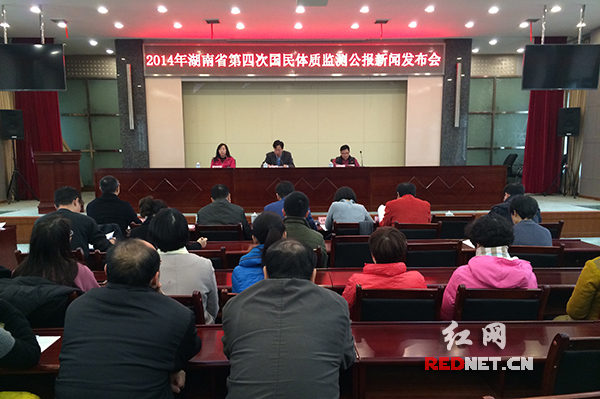 发布会现场红网长沙12月14日讯(时刻新闻记者陈宗昊)今天上午,湖南省体育局局长李舜在长沙发布《湖南省第四次国民体质监测公报》。据公报显示,2014年全省整体国民体质综合指数为100.3,较2010年下降0.65,略高于基准水平。