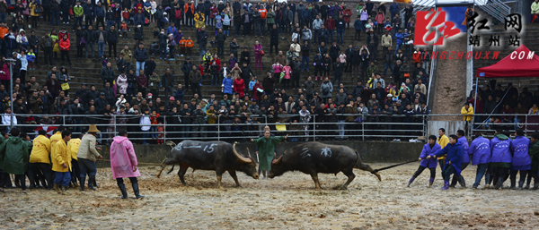 精彩的斗牛,吸引力来自湖南、贵州、广西的大批斗牛迷。图为中国首届野牛争霸赛决赛现场。 黎明/摄