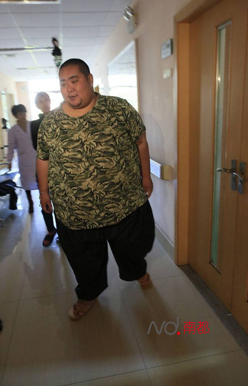 由于“中国第一胖”的曝光率,邓桂梁即使在医院的走廊出现也很腼腆。