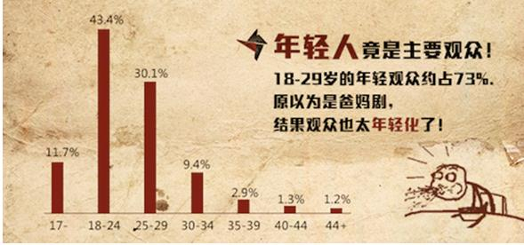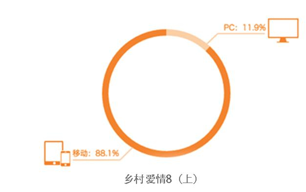 传统印象中《乡村爱情》系列的观众群体应该偏中老年,用户观剧的渠道应该偏电视和PC。但是来自开播后腾讯视频的数据显示,通过PC端和移动端观看数量分别占据11.9%和88.1%,显然移动端更受青睐,这也是网络人群的显著特征,需要随时随地以及碎片化时间自由观看。
