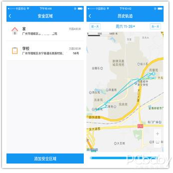 电子围栏:可以设定安全区域,输入家、学校的地址,只要宝贝到达安全区域,手机上会收到相应的信息提醒。一旦宝贝走出安全区域,家长也会及时收到提醒信息,能够及时保证孩子的安全。