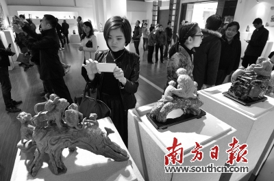 石湾陶瓷博物馆展出的《灵猴献瑞巡回展》吸引不少观众捧场。戴嘉信 陈子晴 摄