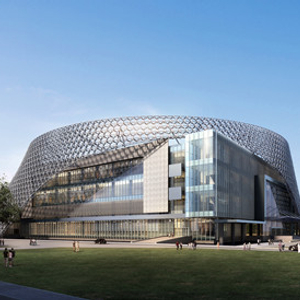 WCA2015全球总决赛的总导演李天庆先生介绍道,场馆在整个设计上采取了回字形的结构,在外围上铁网架构的设计非常别致,参考了回族的饰帽和面纱,整体设计独一无二。此外,场地在硬件配套设施上也非常完善,主会场的使用面积达到5000平米,无论从通风供暖,地暖等方面,绝对能保持现场温度,众所周知,电子竞技的职业选手对温度要求非常高,这个会场完全能够满足。