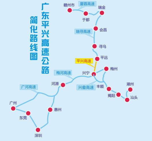 平兴高速通车后,从梅州去往瑞金更为方便快捷,梅州去往江西赣州,经行平兴高速也将节约一个小时以上。