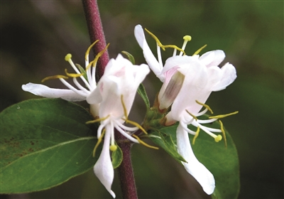 “忍冬花”有着像它的名字一样坚强的习性,悄然在寒风中散发着清香。近日,梅花山景区内就能看到这些可爱的小白花,忍冬还有一个为人熟知的名字“金银花”,因为花开为白色,经过一两天变成黄色得名。因为一蒂二花,成双成对,形影不离,状如雄雌相伴,又似鸳鸯对舞,故有鸳鸯藤之称。它性甘寒气芳香,甘寒清热而不伤胃,芳香透达又可祛邪。