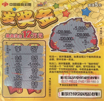 原标题:中“发奖金”12万元 感慨刮刮乐好玩