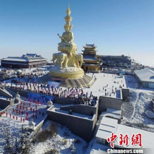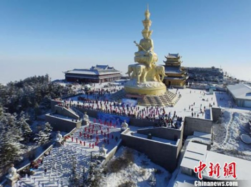 原标题:峨眉山冰雪温泉节开幕 金顶上演千人“冰雪神功”
