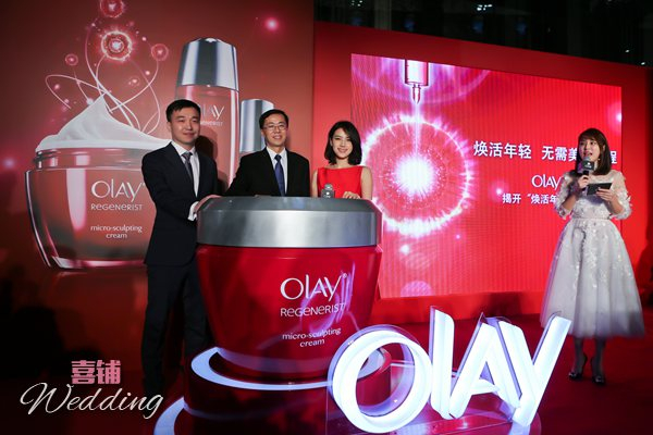 高圆圆与宝洁高层、湘潭步步高高层一同点亮Olay大红瓶。