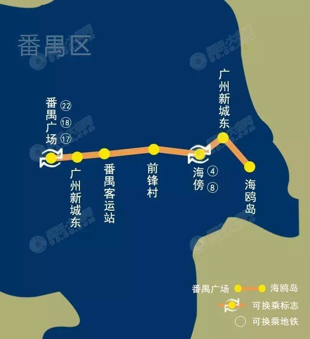 功能定位及意义:串联番禺西南居住片区、东部工业园区和东北产业园区,填补轨道交通覆盖空白,兼顾广州西联佛山顺德的联络。