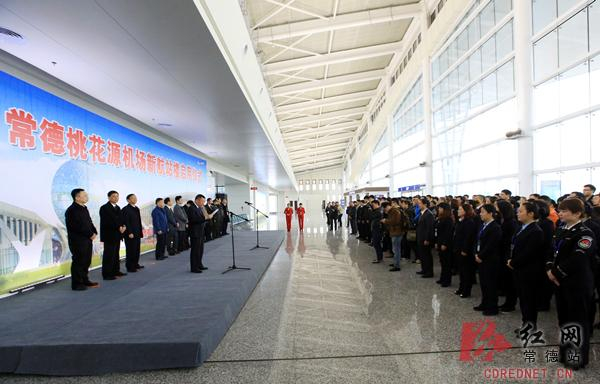 启用仪式现场,常德市委书记王群宣布新航站楼正式启用。常德市长周德睿致辞,他说,新航站楼的建设是市委、市政府大力发展交通事业、夯实交通基础的重要举措,是常德对外开放、优化经济环境的重要平台,是提高常德现代化的水平、提高常德人民幸福生活指数的重要引擎,也是常德经济社会发展的重要的缩影。新航站楼的启用是常德政治、经济、生活中的一件大喜事、大实事、大好事,他希望桃花源机场不要“穿新鞋,走旧路”,要以新的管理方式、新的理念、新的作风,迎接新的硕果。