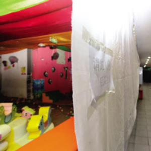 儿童乐园对面,有经营童装玩具的承租户。两家商户都拉起了横幅,促销折扣最低6.5折。但记者在此停留的数十分钟里,没有一个顾客前来。卖童装的商户表示,他们也不愿意看到这个结果,因为儿童游乐园关门,没有大人带孩子来耍,童装和玩具销售也会受影响,“进超市的人少了,超市里的餐饮生意也跟着受到影响。再做不转,我的店子也只好关门了。”
