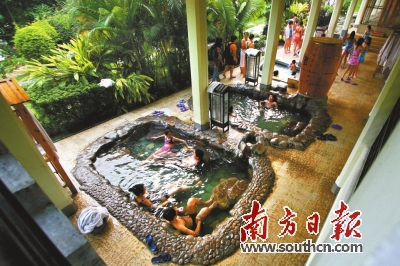 西江温泉地下热源达5平方公里,露天泉涌100多