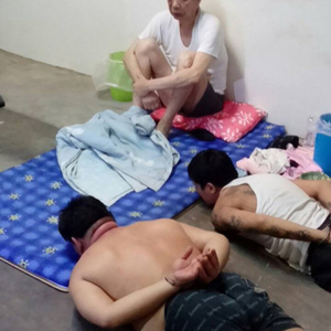 台湾警方10月27日晚在云林县救出遭绑架失踪38日的港商黄煜坤(坐者),并当场拘捕两名绑匪,锁上手铐令伏在地上待查。香港《大公报》