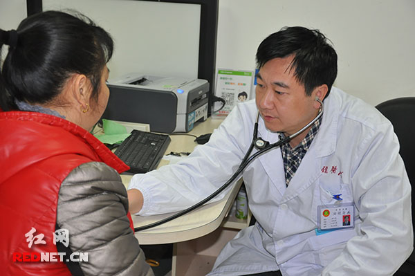 12月22日上午,黄日茂医生正在门诊室内给患者做检查。