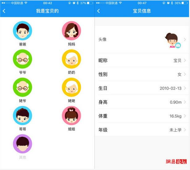 然后在APP中设置与小朋友的关系,以及小朋友的个人基本信息。