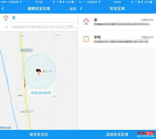 采用全国最好的电子围栏技术,家长可随意选择地点,比如学校或者家,设置300-1000米的安全范围,结合360云计算的强大数据分析能力,云端服务器能准确识别孩子的路线轨迹,一旦孩子脱离安全区域,会触发报警,客户端提示家长孩子已离开安全区域。这样即使家长不在孩子身边,也能实时了解孩子是否在安全区域。