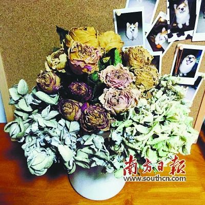 摩卡告诉南方日报记者,对于花儿可以更加的包容和接纳,欣赏他们不同时候的状态。“无论是花苞、盛放的花朵还是凋谢之后的残花,都是很美丽的。”耐心的摩卡还尝试做起干花,每当买来的鲜花凋谢了,她就会把它收藏起来,吊挂在家中让其自然风干,经过一段时间之后,花儿就成为美丽又耐看的干花束了。“制作干花的目的是不那么浪费,最大限度地把花儿利用起来。”摩卡笑言。