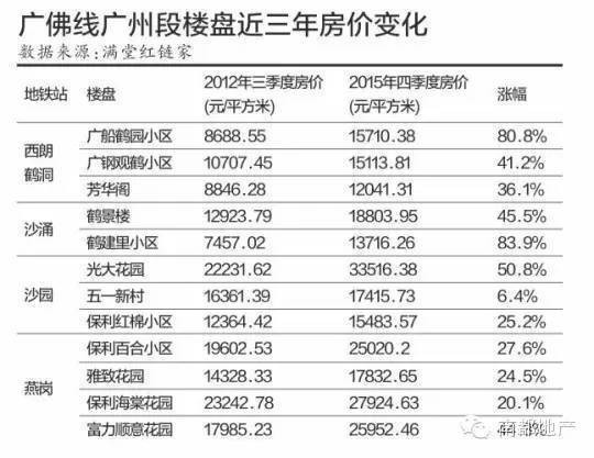 原标题:广佛线地铁盘,房价三年最高涨84%!猜猜是谁这么猛?