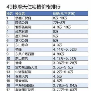 对于那些一般高度的住宅,广州通常的惯例是越低层售价越便宜,越高层越贵,不过,在今年亮相的超高层住宅中,却出现了这样的一种情况———楼越高,可能售价越便宜。