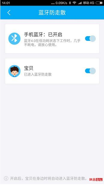 蓝牙 防走散。活泼好动是每个小朋友的天性。可能家长一个不留神,孩子已经跑出去很远。尤其在大型超市里面,货物密集 人多。在家长挑选货物的时候,而孩子有极有可能被一个东西吸引后直接跑过去。在这个时候蓝牙防走散就非常实用了。开启该功能后,孩子一旦跑出蓝牙范围,手机会即使发出报警声。这样孩子可能还没有跑出家长视线家长即可发现