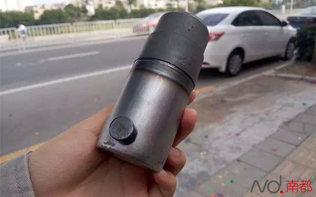 南都记者根据目击者描述找到了类似礼花,并将底部基座拆下。有市民表示,的确挺像炸弹。有目击者告诉南都记者,事情前后处理花了3个多小时,警方处理也较为谨慎。